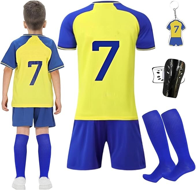 L'ensemble complet de football pour enfants couvre le maillot et les shorts de l'équipe vedette, et comprend également des chaussettes et des protèges tibias, qui sont livrés avec un porte-clé exquis. Rassemblez tout le nécessaire. Un tel produit complet garantit que votre enfant se prépare aux matchs de football.