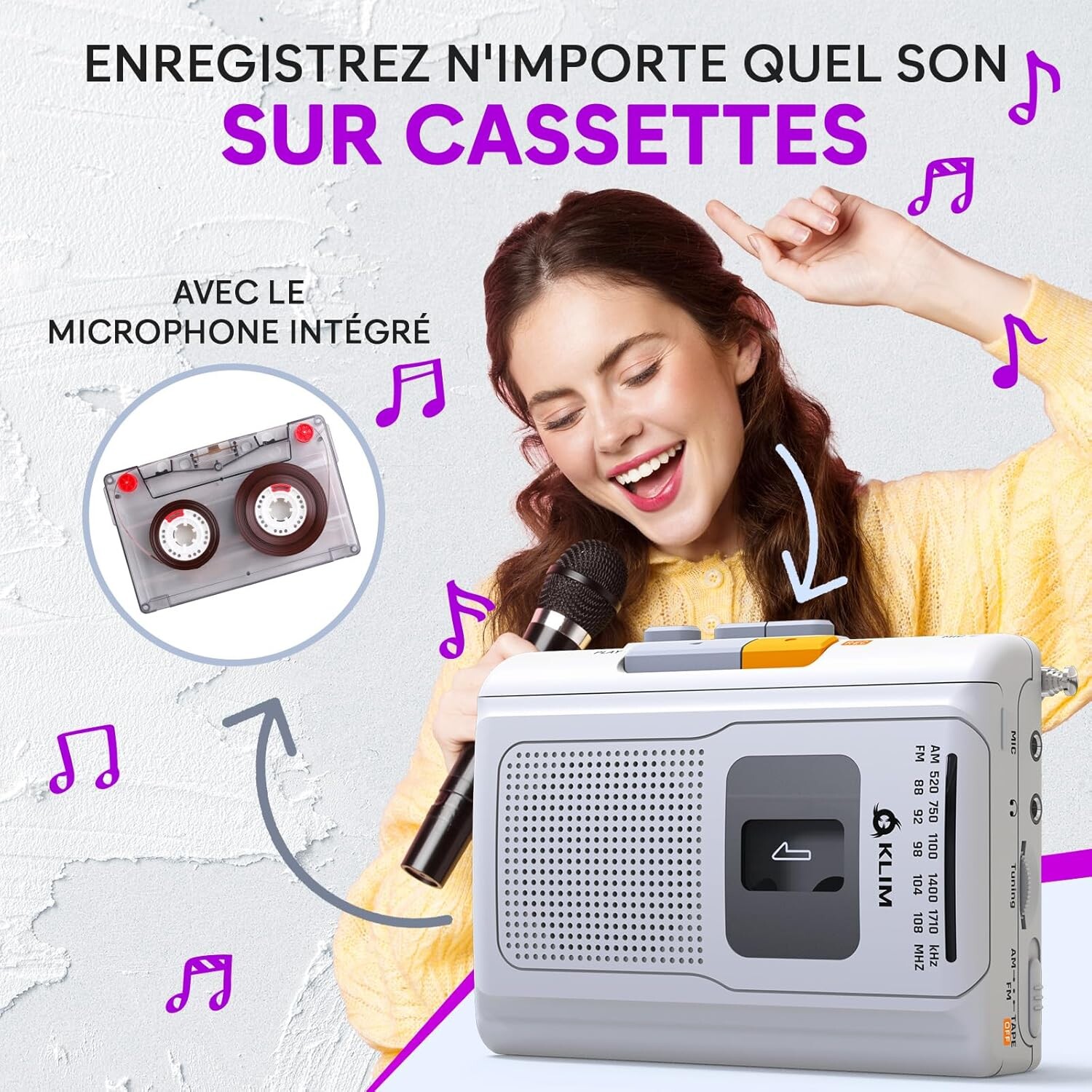 Le KLIM K8 est un lecteur de cassettes compact conçu pour profiter de vos enregistrements audio en toute simplicité. Il permet la lecture de cassettes classiques ainsi que l’enregistrement via son microphone intégré.