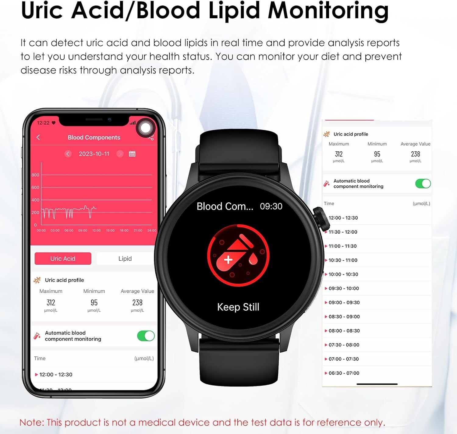• Acide urique et lipides : Détection en temps réel des niveaux d'acide urique et des lipides sanguins pour prévenir les maladies.