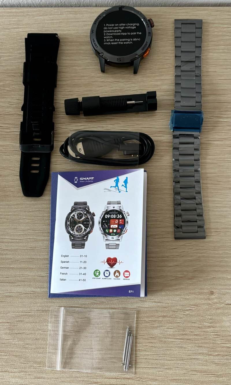 Montre neuve livrée complète dans sa boîte d'origine avec tous les éléments ; pompes, 2 bracelets (1 métal et 1 en silicone) tourne vis, etc..
